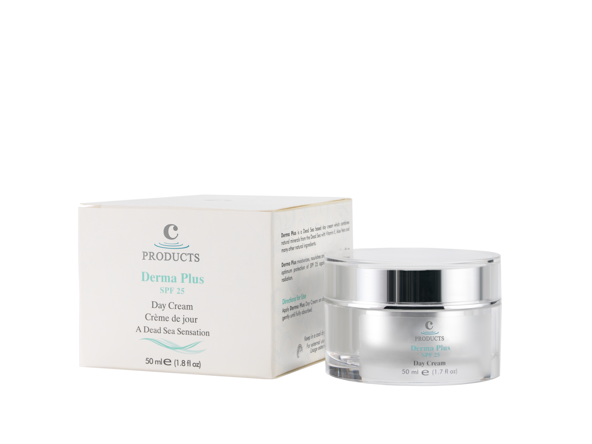 Derma Plus er dagkrem sem byggir á Dauðahafinu sem sameinar náttúruleg steinefni úr Dauðahafinu með E-vítamíni, arganolíu, Aloe Vera og mörgum öðrum fínum hráefnum. Derma Plus gefur ekki aðeins raka og nærir húðina heldur dregur einnig úr hrukkum, endurheimtir mýkt húðarinnar, útrýmir bólum og læknar húðina á sama tíma og hún veitir húðinni hámarksvörn upp á SPF 25 gegn skaðlegri UV geislun.